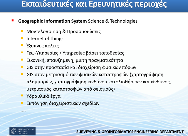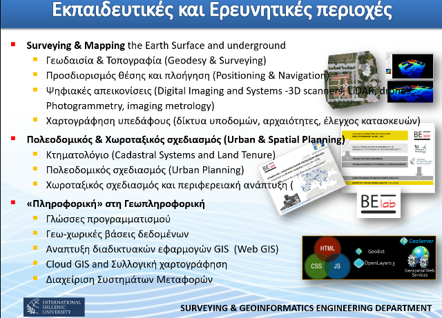 Καλώς ήρθατε στο Τμήμα Μηχανικών Τοπογραφίας και Γεωπληροφορικής της Σχολής Μηχανικών του Διεθνούς Πανεπιστημίου της Ελλάδος.