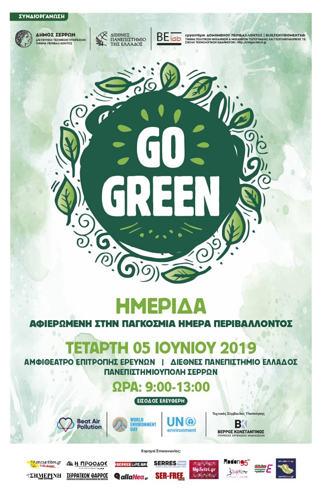 Πρόσκληση και πρόγραμμα της ημερίδας "Go Green" για την Παγκόσμια Ημέρα Περιβάλλοντος, Τετάρτη 5 Ιουνίου 2019