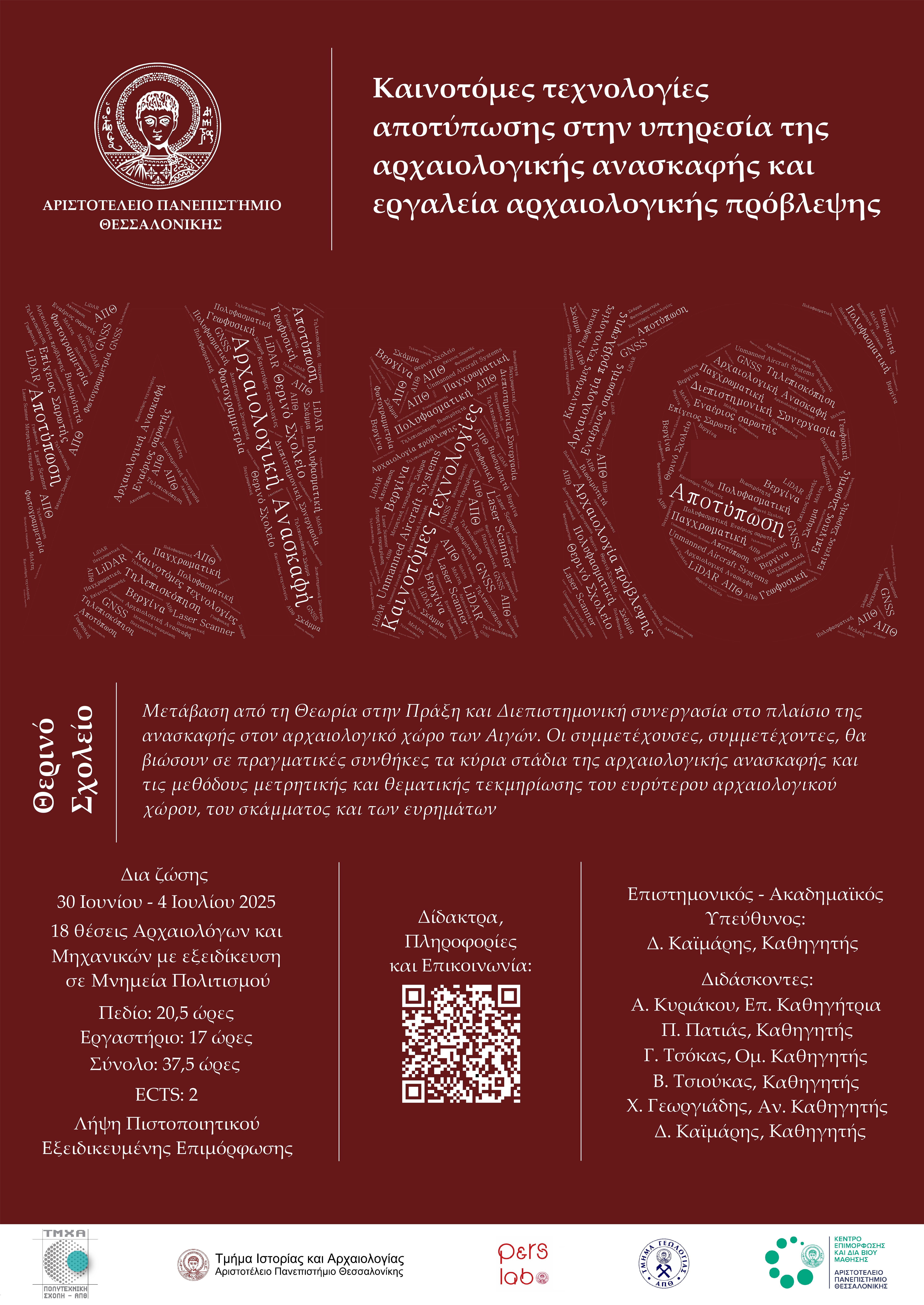Τίτλος προγράμματος: Καινοτόμες τεχνολογίες αποτύπωσης στην υπηρεσία της αρχαιολογικής ανασκαφής και εργαλεία αρχαιολογικής πρόβλεψης.