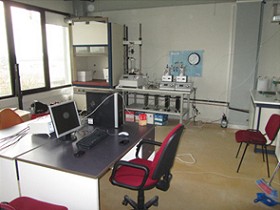 Παράλληλα, σε τρεις κεντρικούς και έξι επίτοιχους πάγκους εργασίας, περιλαμβάνει το σύνολο των απαραίτητων συσκευών εργαστηρίου Εδαφομηχανικής (ηλεκτρονικοί ζυγοί, ηλεκτρικές κοσκινιέρες, φούρνοι, εξολκείς, σφύρα, μήτρες, αεροσυμπiεστές, πενετρόμετρο, παχύμετρα κτλ).